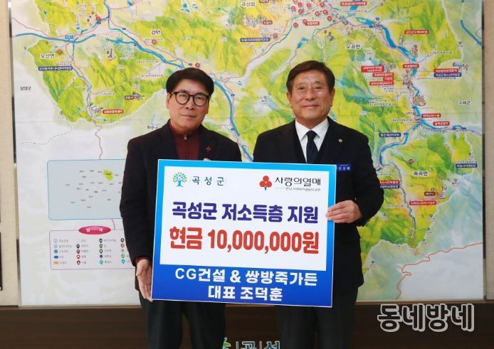 동네방네 김형규 기자 | 곡성군이 입면 CG건설 및 쌍방죽가든 조덕훈 대표가 군 지정 전남사회복지공동모금회에 1천만 원을 기부했다고 30일 전했다.