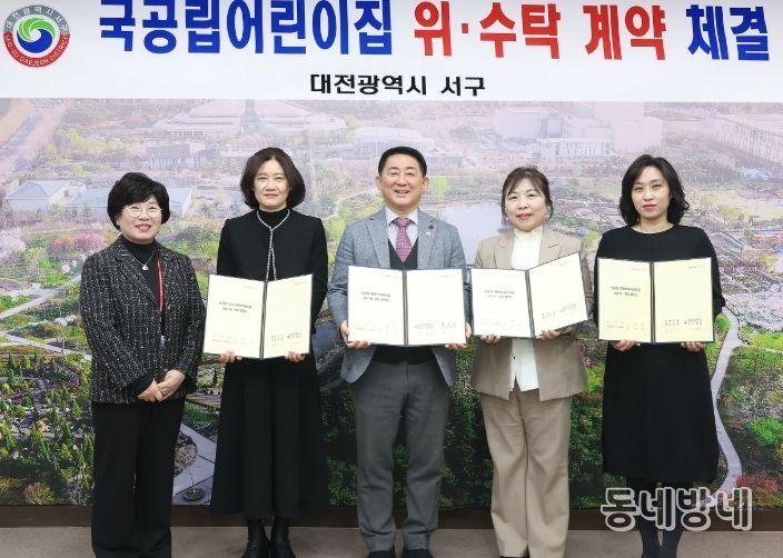 동네방네 김형규 기자 | 대전 서구는 30일 구청 갑천누리실에서 국공립 어린이집 위탁 기간 만료 예정인 어린이집 3개소와 위수탁 재계약을 맺었다.