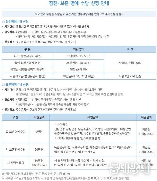 동네방네 김형규 기자 | 동해시는 나라를 위해 헌신한 국가유공자와 그 유가족들의 명예를 드높이고 안정적인 생활을 지원하기 위해 보훈 복지체계를 강화한다고 밝혔다.