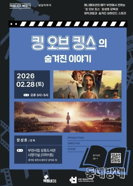 동네방네 김형규 기자 | 부천시는 책동네31과 협력해 오는 2월 28일 오후 3시, 부천시립상동도서관에서 애니메이션 ‘킹 오브 킹스’를 연출한 장성호 감독과 함께하는 ‘책동네31 특별 북토크’를 연다.