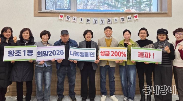 신혜정 왕조1동장은 “많은 주민과 단체에서 한마음으로 나눔에 동참해 주신 덕분에 목표의 200%를 달성할 수 있었다”며 “앞으로도 촘촘한 복지 실현을 위해 나눔 문화 확산에 최선을 다하겠다”고 밝혔다.