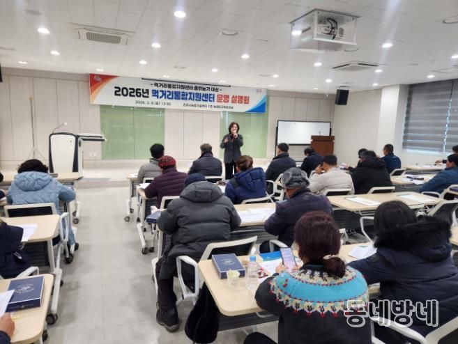 동네방네 김형규 기자 | 진주시는 6일 농업기술센터 농업인교육강의실에서 먹거리통합지원센터의 출하농가 111명을 대상으로 ‘2026년도 먹거리통합지원센터 운영 설명회’를 개최했다.