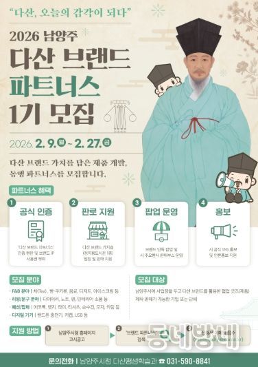 동네방네 김형규 기자 | 남양주시는 실학의 거장 정약용을 21세기 감각으로 되살린 브랜드 굿즈를 개발하는‘2026 다산 브랜드 파트너스’1기를 오는 2월 9일부터 27일까지 모집한다.