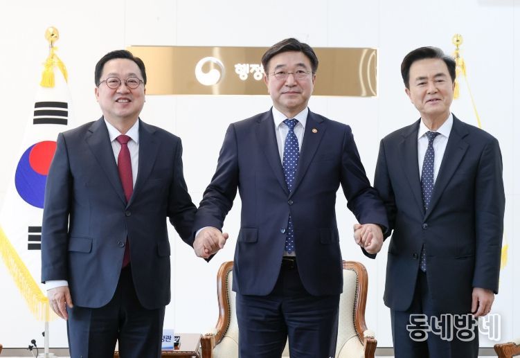 동네방네 김형규 기자 | 이장우 대전시장은 6일 오후 4시 정부세종청사에서 윤호중 행안부 장관, 김태흠 충남지사와 간담회를 갖고, 대전․충남 행정통합 특별법의 원안 관철을 정부에 촉구하며 관련 건의문을 공식 전달했다.