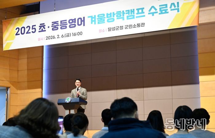동네방네 김형규 기자 | 달성교육재단은 지난 6일 달성군청 군민소통관에서 ‘2025 초·중등 영어 겨울방학캠프 수료식’을 열었다. 이날 행사에는 해외 영어연수 프로그램에 참가한 학생 50명과 학부모들이 참석해 수료증을 받고 방학캠프 운영 성과를 공유했다.