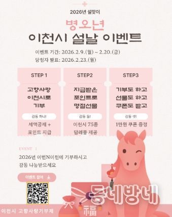 이번 이벤트는 2월 9일부터 2월 20일까지 진행되며, 기간 중 이천시에 10만 원 이상 기부한 기부자를 대상으로 자동 응모 방식으로 운영된다. 기부자는 세액공제 혜택과 함께, 설 명절 감사의 마음을 담은 답례품과 경품을 받을 수 있다.