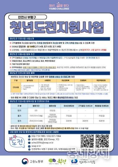 동네방네 김형규 기자 | 부평구는 오는 10월까지 구직에 어려움을 겪고 있는 지역 청년들의 사회 재진입을 돕기 위한 ‘2026년 청년도전지원사업’ 참여자를 모집한다고 밝혔다.