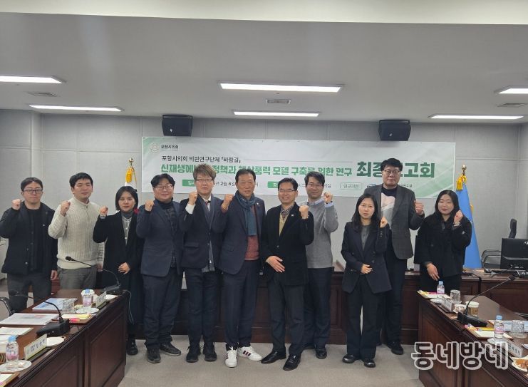 김영헌 대표 의원은 “이번 연구는 단순한 신재생에너지의 보급을 넘어 포항의 근간인 수산업과 해상풍력이 어떻게 조화롭게 공존할 수 있을지에 대한 깊은 고민의 결과”라며, “보고회에서 제시된 다양한 정책 제언들이 시정에 적극 반영돼 포항시가 탄소중립 실현과 지역 경제 활성화라는 두 마리 토끼를 잡을 수 있도록 의회 차원에서도 최선을 다하겠다”라고 밝혔다.