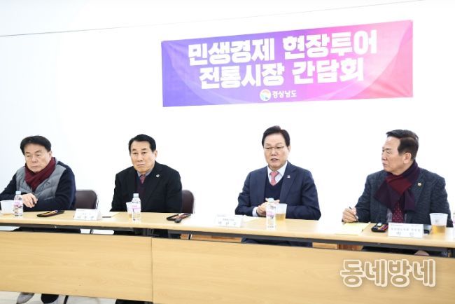 동네방네 김형규 기자 | 경상남도는 설 명절을 앞두고 9일 양산 남부시장을 방문해 성수품 가격과 수급 상황을 확인하고, 전통시장 상인회 관계자들과 간담회를 열어 현장 의견을 청취했다.