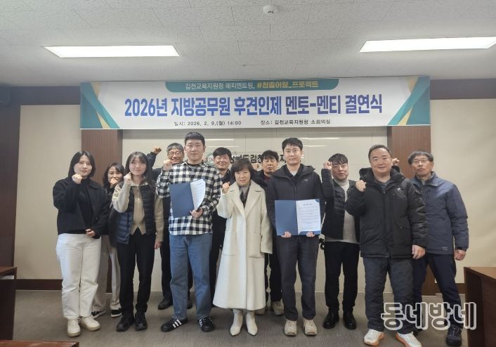동네방네 김형규 기자 | 경상북도김천교육지원청은 2월 9일 오후2시 김천교육지원청 소회의실에서 신규 공무원과 선배 공무원 12명이 참석한 가운데 지방공무원 후견인제 멘토-멘티 결연식을 개최했다.