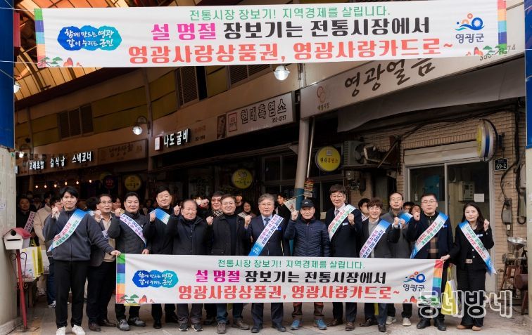 이는 공직자들이 전통시장을 직접 찾아 영광사랑상품권으로 제수용품과 굴비 등 지역 특산물을 구매하여 지역상권 활성화를 유도하고 지역사랑상품권 애용 홍보로 지역 경제 선순화 문화 확산에 기여할 것으로 기대하고 있다.