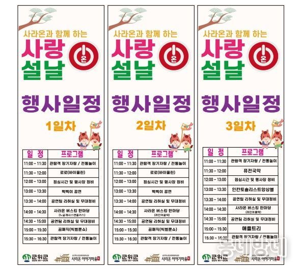 군위군 관계자는 “설 명절을 맞아 가족, 친구, 연인 모두가 함께 즐길 수 있는 전통문화 체험과 공연을 준비했다”며 “사라온이야기마을에서 따뜻하고 즐거운 설날의 추억을 만들어 가시길 바란다”고 전했다.