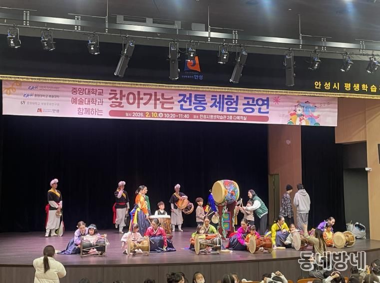 동네방네 김형규 기자 | 안성시는 2월 10일 오전 10시 안성시평생학습관 2층 다목적실에서 열린 ‘찾아가는 전통 체험 공연 시즌 2 – 춤과 연희가 함께하는 무대’가 150여 명의 시민이 함께한 가운데 큰 호응 속에 성황리에 마무리됐다고 밝혔다.