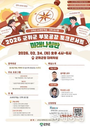 동네방네 김형규 기자 | 대구시 군위군은 오는 24일 군청 대회의실에서 중ㆍ고등 학생, 학부모와 군위교육에 관심 있는 분들을 대상으로 ‘2026 군위군 부모공감 토크콘서트’를 진행한다고 밝혔다.