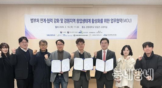 동네방네 김형규 기자 | 강원도립대학교 라이즈(RISE) 사업단 로컬창업센터는 2월 19일 강원대학교 보듬관에서 강원대학교 KNU 창업혁신원, 강원대학교 라이즈(RISE) 사업단, 강릉원주대학교 라이즈(RISE) 사업단 등과 함께 범부처 연계·협력 강화 및 강원지역 창업생태계 활성화를 위한 업무협약(MOU)을 체결했다고 밝혔다.