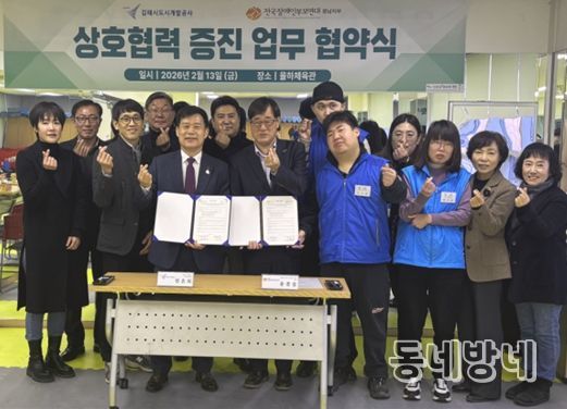 동네방네 김형규 기자 | 김해시도시개발공사 스포츠센터 운영부는 지난 13일, 율하체육관에서 (사)전국장애인부모연대 경남지부와 발달장애인 현장 중심 직업훈련 및 일자리 확대를 위한 업무협약을 체결했다.
