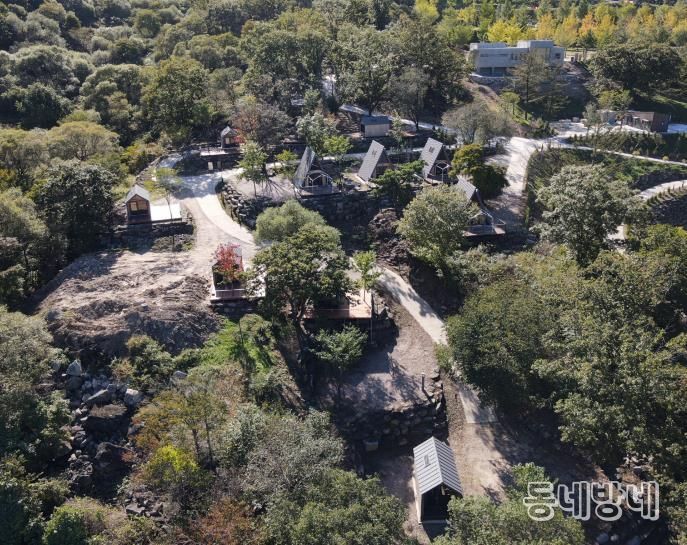 야영장은 캠퍼하우스 11동, 카라반 15동, 텐트사이트 31개소 등 다양한 숙박·야영 시설을 갖추고 있다. 특히 카라반 구역에는 커뮤니티 오피스를 갖춘 ‘워케이션(Work+Vacation)’ 공간이 조성되어 있어 자연 속에서 업무와 휴식을 동시에 즐길 수 있는 체류형 관광지로 운영되고 있다.