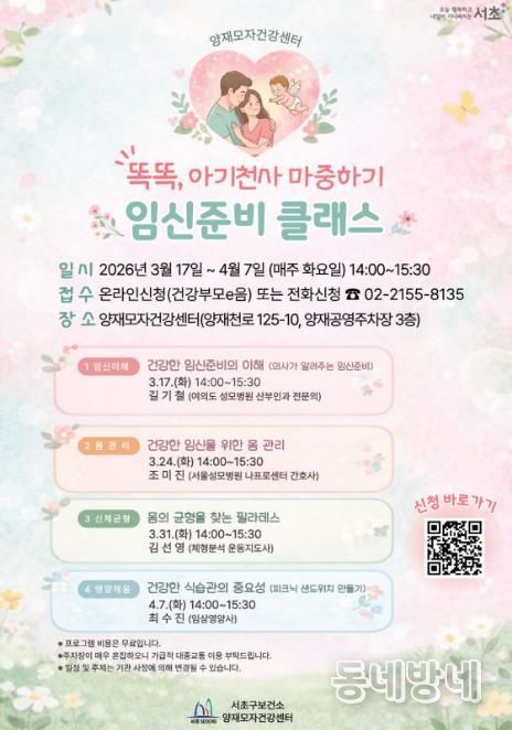 동네방네 김형규 기자 | 서울 서초구가 2026년을 맞아 양재모자건강센터의 모자건강 프로그램을 ‘온가족 활력 프로그램’으로 새롭게 단장하여 확대 운영한다고 밝혔다.
