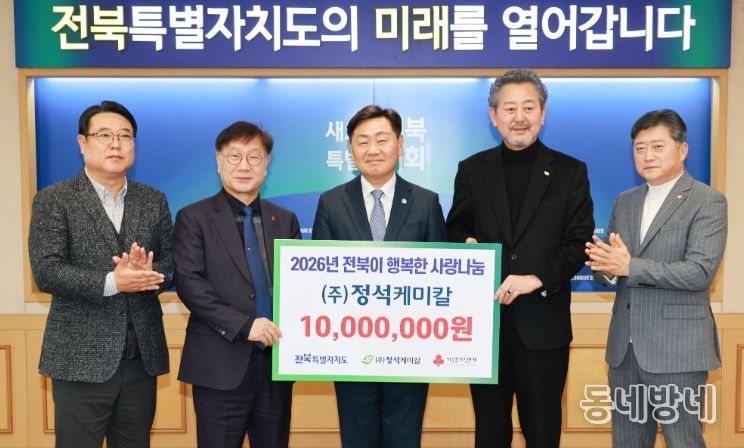 동네방네 김형규 기자 | 전북특별자치도는 23일 ㈜정석케미칼이 불우이웃돕기 성금 1천만 원을 지정 기탁했다고 밝혔다.