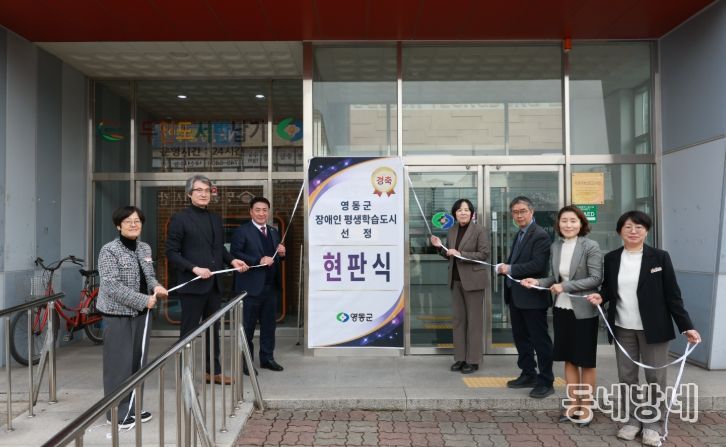 동네방네 김형규 기자 | 충북 영동군은 23일 오후 평생학습관(레인보우영동도서관)에서 ‘2025년 장애인 평생학습도시 지정’ 현판식을 개최했다.