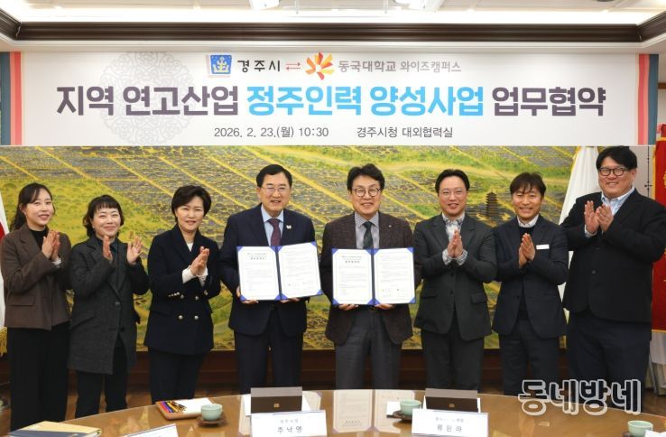 경주시는 23일 시청 대외협력실에서 동국대학교 WISE캠퍼스와 ‘지역 연고산업 정주인력 양성사업’ 추진을 위한 업무협약을 체결했다고 24일 밝혔다.