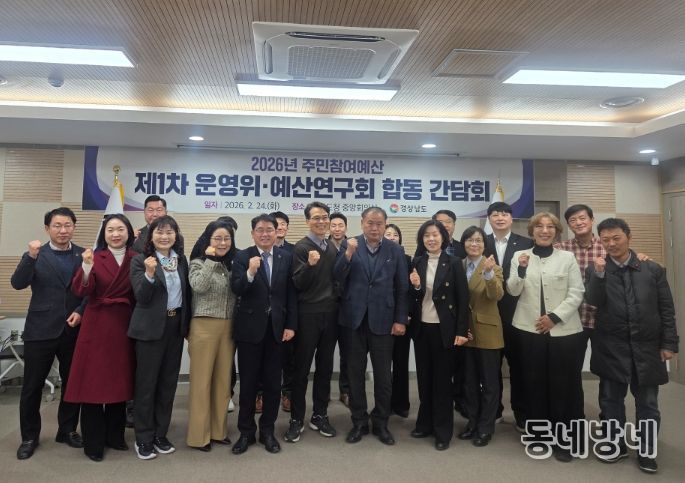 동네방네 김형규 기자 | 경상남도는 24일 도청 중앙회의실에서 ‘2026년 제1차 주민참여예산 운영위원회·예산연구회 합동간담회’를 개최하고, 올해 주민참여예산사업의 추진 방향과 개선 과제를 논의했다.