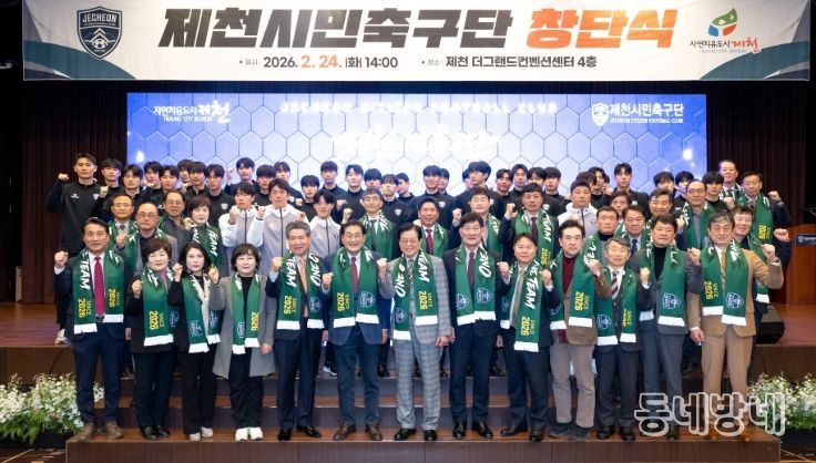 동네방네 김형규 기자 | 제천시민축구단이 지난 24일, 제천더그랜드컨벤션센터에서 창단식을 개최하고 2026시즌 K4리그 참가를 향한 공식 출범을 선언했다.