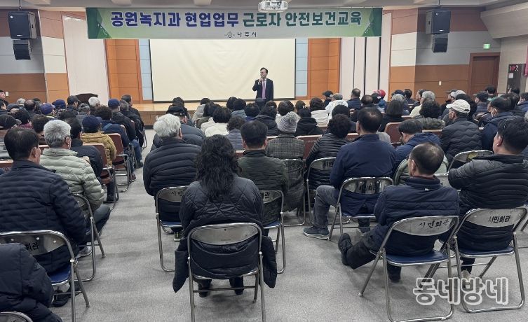 동네방네 김형규 기자 | 전남 나주시는 24일 나주시민회관에서 산림·녹지 분야 기간제근로자 150여 명을 대상으로 채용 전 안전보건교육을 실시했다.