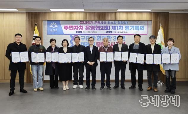 동네방네 김형규 기자 | 금천구는 2월 24일 구청 기획상황실에서 10개 동 주민자치회와 ‘2026~2027년 자치회관 운영 위·수탁 협약’을 체결했다고 밝혔다.
