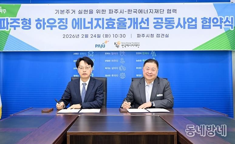 동네방네 김형규 기자 | 파주시는 지난 24일 한국에너지재단과 ‘기본주거 실현을 위한 파주형 하우징 에너지효율개선 공동사업’업무협약을 체결했다.