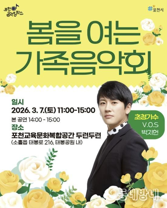 동네방네 김형규 기자 | 포천시는 오는 3월 7일 포천시 교육문화복합공간 두런두런에서 ‘포천음악창작소, 봄을 여는 가족음악회’를 개최한다.