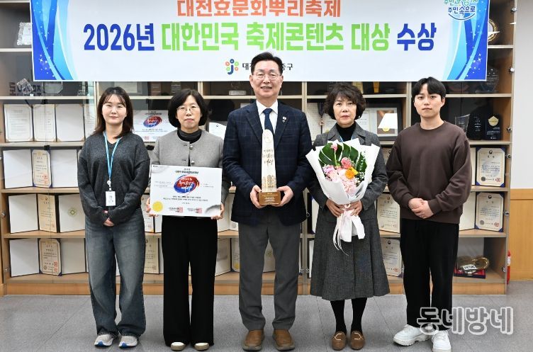 동네방네 김형규 기자 | 대전 중구는 지난 24일 서울 피스앤파크 컨벤션센터에서 열린 2026년 제14회 대한민국 축제콘텐츠 대상 시상식에서 대전효문화뿌리축제가 축제 문화유산·역사 부문 대상을 수상했다고 밝혔다.