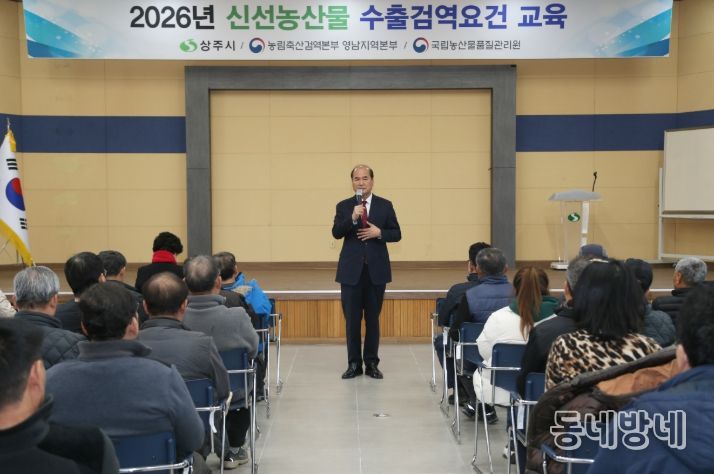 동네방네 김형규 기자 | 상주시는 2월 25일 상주시 농업기술센터 대강당에서 농림축산검역본부(영남지역본부) 구미사무소 주관으로 ‘2026년 신선농산물 수출검역요건 교육’을 실시했다.