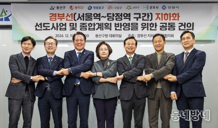 동네방네 김형규 기자 | 경부선 지하화 추진협의회가 오는 3월 4일 용산역 일대에서 ‘철도지하화 종합계획 발표 촉구’를 위한 공동성명서를 발표한다. 협의회에는 서울 용산구·동작구·영등포구·구로구·금천구와 경기 안양시·군포시 등 7개 기초지자체가 참여하고 있다.