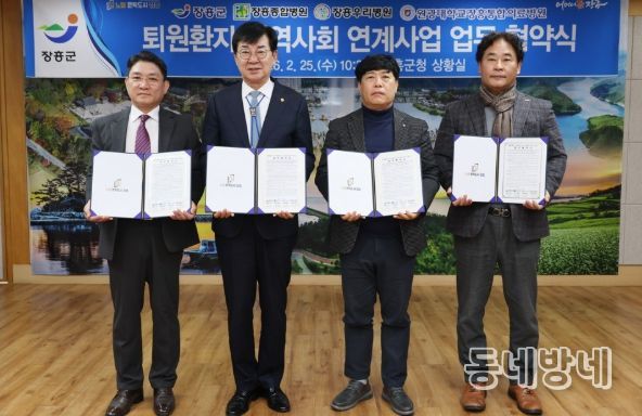 동네방네 김형규 기자 | 장흥군은 지난 25일 군청 상황실에서 퇴원환자의 지역사회 안정적 복귀를 지원하기 위해 장흥종합병원, 장흥우리병원, 장흥통합의료병원과 '퇴원환자 지역사회 연계사업' 업무협약을 체결했다고 밝혔다.