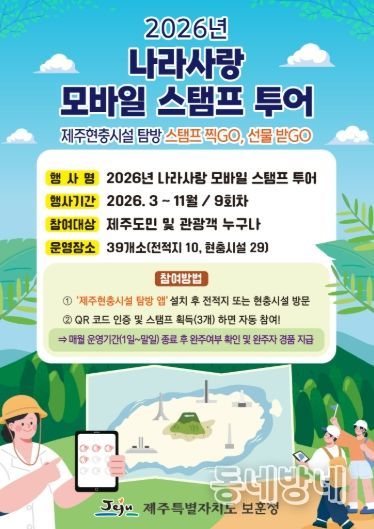 동네방네 김형규 기자 | 제주특별자치도 보훈청은 오는 3월부터 11월까지 모바일 앱을 활용해 도민과 관광객 누구나 참여할 수 있는 ‘2026 나라사랑 모바일 스탬프 투어’를 운영한다고 밝혔다.
