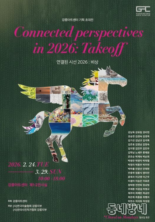 동네방네 김형규 기자 | 강릉아트센터는 24일 기획 초대전 《연결된 시선 2026: 비상》을 개막하고, 3월 29일까지 제1·2전시실에서 전시를 진행한다.