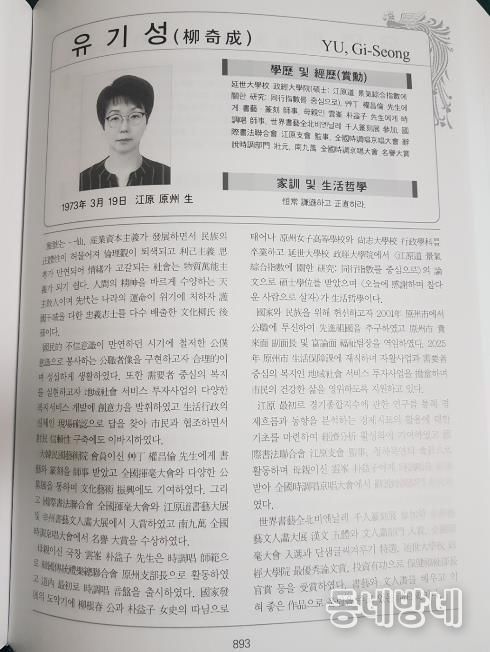 동네방네 김형규 기자 | 원주시 생활보장과 자립지원팀에 근무하는 유기성 팀장이 한국민족정신진흥회가 발간하는 ‘현대한국인물사’에 등재됐다.