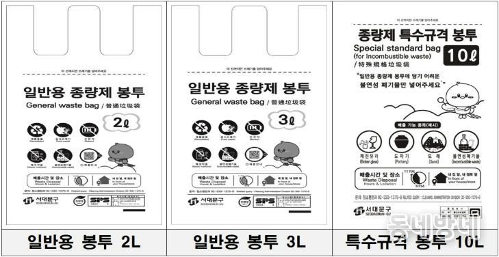 동네방네 김형규 기자 | 서대문구가 3월부터 소용량 일반용 종량제 봉투 2L, 3L 및 특수 규격(마대) 봉투 10L를 신규 판매한다.