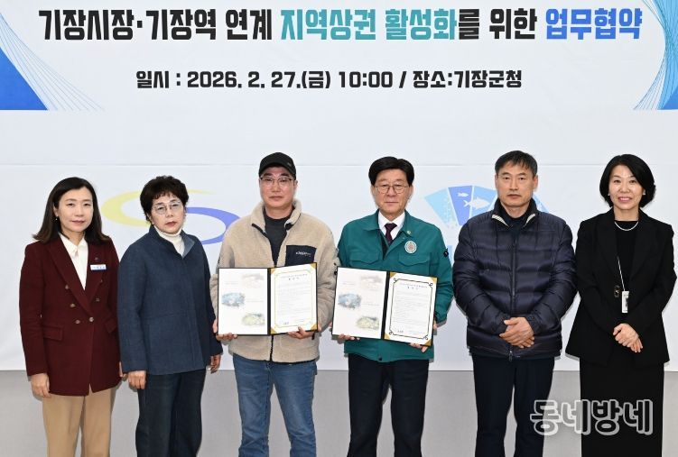 동네방네 김형규 기자 | 기장군은 27일 기장시장 일원 자율상권조합(이사장 김동찬)과 ‘기장시장-기장역 연계 지역상권 활성화를 위한 업무협약’을 체결했다고 밝혔다.