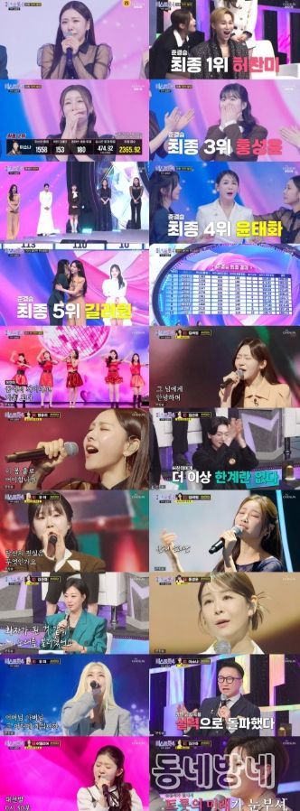 TOP10의 모든 무대가 끝나고 트롯퀸들의 순위가 공개돼 긴장감을 높였다. 먼저, 마스터 점수 1위 허찬미(1,585점), 2위 길려원(1,576점), 3위 윤윤서(1,561점), 4위 이소나(1,558점), 5위 윤태화(1,547점), 6위 홍성윤(1,544점), 7위 염유리(1,542점), 8위 김산하(1,515점), 9위 유미(1,503점), 10위 이엘리야(1,468점). 여기에 온라인 투표 점수, 국민대표단 점수를 합산한 중간 순위는 1위 길려원(1,907점), 2위 허찬미(1,906점), 3위 홍성윤(1,896점), 4위 이소나(1,891점), 5위 윤태화(1,872점), 6위 윤윤서(1,866점), 7위 염유리(1,816점), 8위 김산하(1,766점), 9위 이엘리야(1,739점), 10위 유미(1,726점)다. 단 몇 점차 초박빙의 승부가 이어진 것.