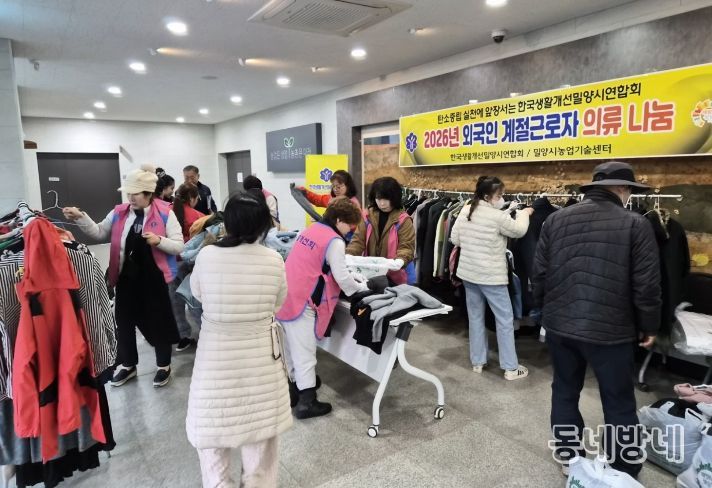 동네방네 김형규 기자 | 한국생활개선밀양시연합회(회장 안화영)는 27일 밀양시농업기술센터 농업인교육관에서 2024년부터 3년째 이어오고 있는 외국인 계절 근로자를 위한 ‘사랑의 의류 나눔 행사’를 개최했다.