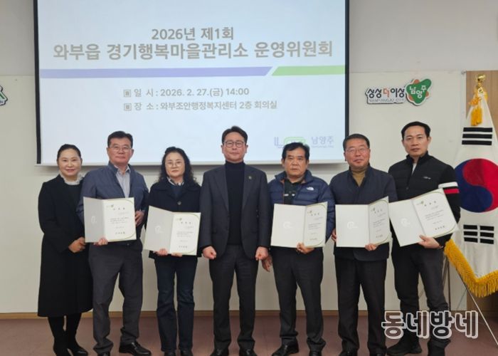 동네방네 김형규 기자 | 남양주시는 27일 와부조안행정복지센터 2층 회의실에서 와부읍 경기행복마을관리소 운영위원회 위원을 위촉하며 올해 첫 회의를 개최했다고 밝혔다.
