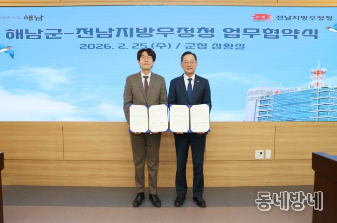 동네방네 김형규 기자 | 해남군은 25일 전남지방우정청과 해남 농수축산물의 온라인 판로 확대와 유통 활성화를 위한 업무협약을 체결했다.