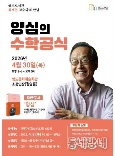 영도도서관 관계자는 “최재천 교수님의 통찰을 통해 영도구민들이 일상 속 양심의 가치를 되새기고, 서로를 배려하는 고결한 공정의 의미를 체감하는 소중한 기회가 되길 바란다”고 전했다.