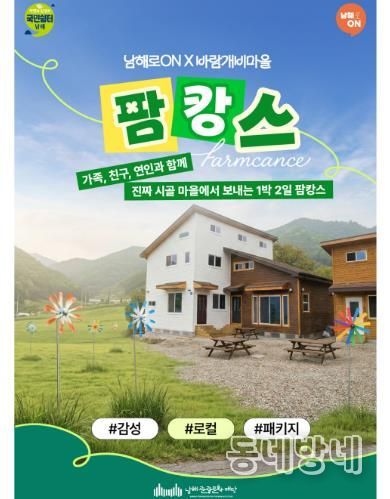 동네방네 김형규 기자 | 남해관광문화재단이 운영하는 ‘남해로ON(namhaeon.com)’에 1박 2일 여행 상품인 ‘바람개비 팜캉스’가 출시됐다.