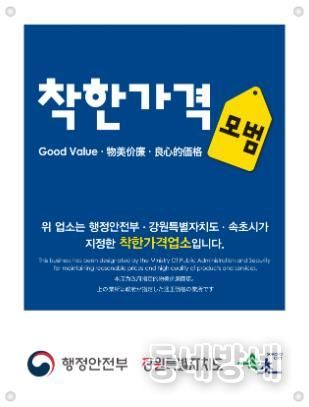 동네방네 김형규 기자 | 속초시는 고물가 상황 속에서도 저렴한 가격과 양질의 서비스를 제공하며 지역 물가 안정에 기여하는 착한가격업소 12개소를 신규 모집한다.