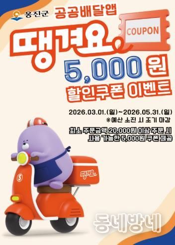 동네방네 김형규 기자 | 옹진군은 지역 소상공인의 매출 증대와 군민의 생활비 부담 완화를 위해 공공배달앱 '땡겨요' 할인쿠폰 이벤트를 시행한다고 밝혔다.