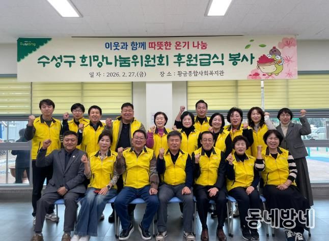 동네방네 김형규 기자 | 대구 수성구 희망나눔위원회는 지난달 27일 황금종합사회복지관을 찾아 지역 어르신 200여 명을 대상으로 사랑의 급식 봉사활동을 펼치며 지역사회에 훈훈한 감동을 전했다.