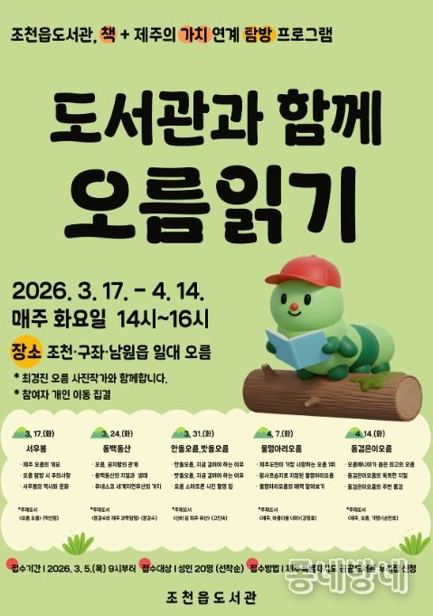 동네방네 김형규 기자 | 제주시 조천읍도서관은 제주의 가치가 담긴 독서문화 탐방 프로그램 ‘도서관과 함께 오름 읽기’를 운영한다.